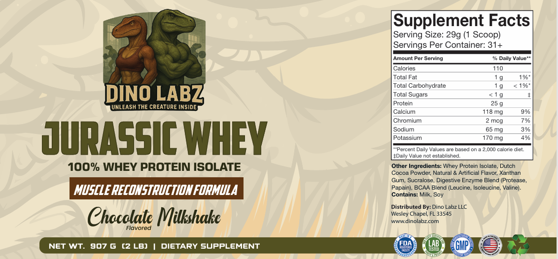 Jurassic Whey 100% whey protein isolate + added BCAAs for rapid muscle recovery